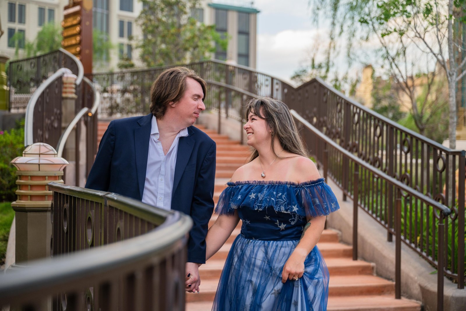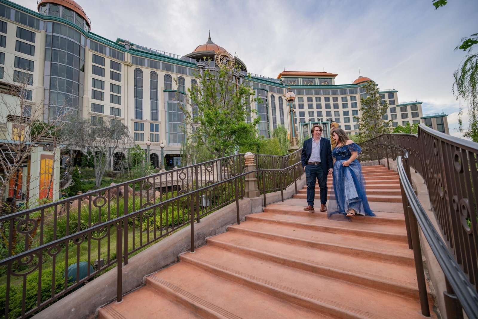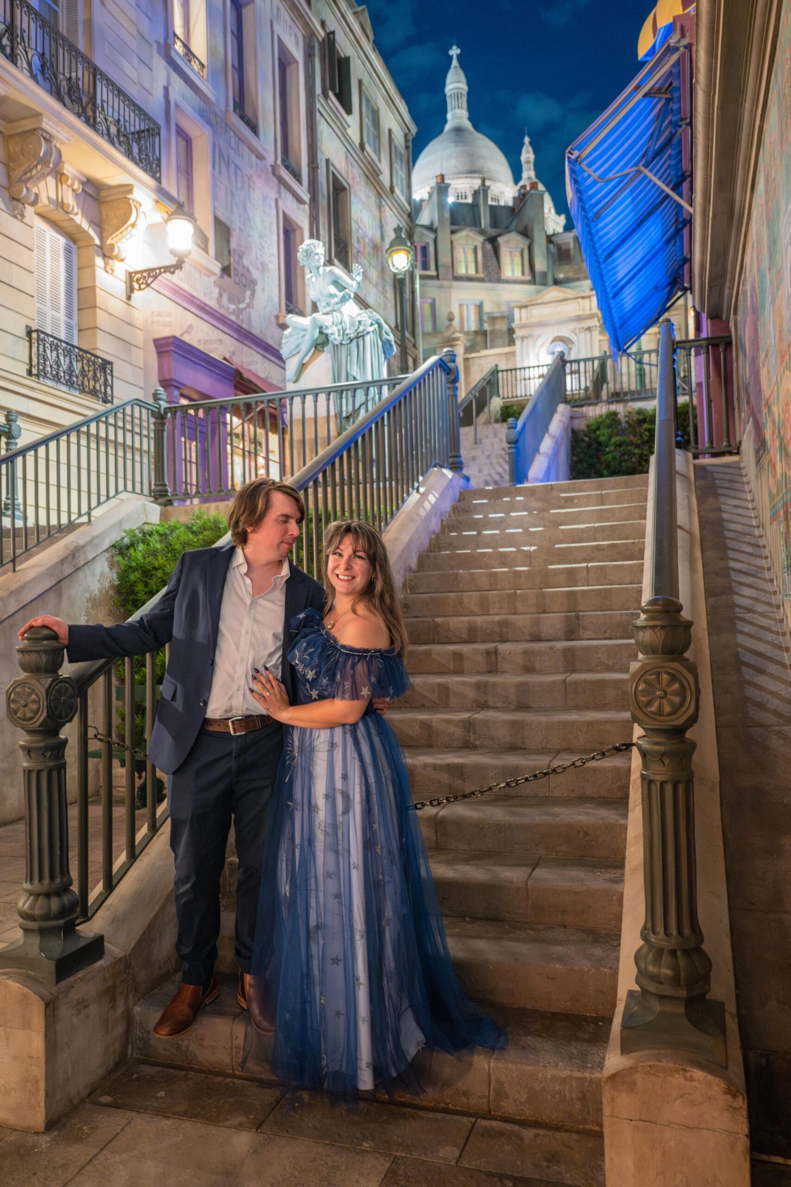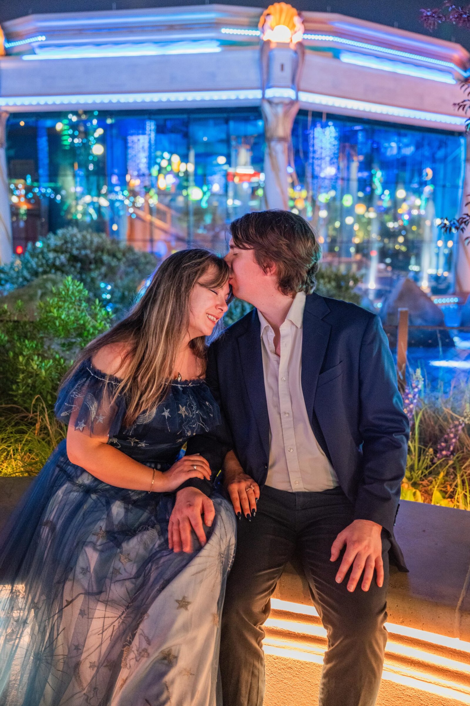 Nighttime is just as good—sometimes even better for a Grand Helios proposal—because most guests are inside the parks or at dinner. That means fewer people around and a more intimate setting. Plus, all the lights come on, giving your photos a vibrant, colorful look that really stands out.
